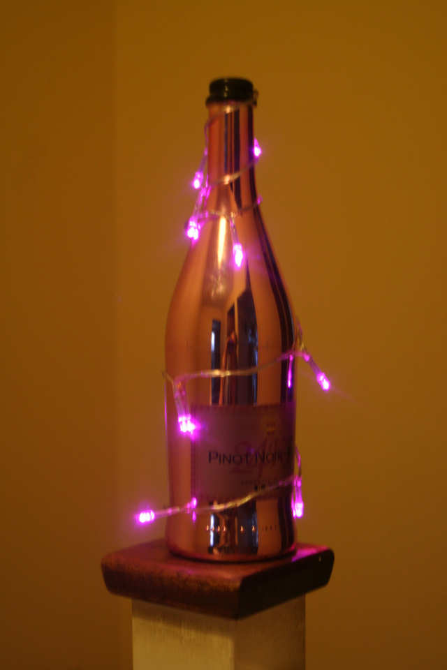 The only viable solution was to put the LEDs on the outside, with an 'invisible' top fixing. It turns out that sticking LEDs inside a bottle is quite a complex job... Can you guess how many steps it takes? Click Here to find out! | |||